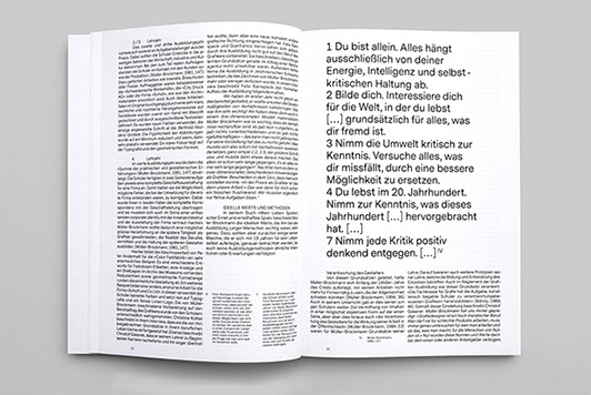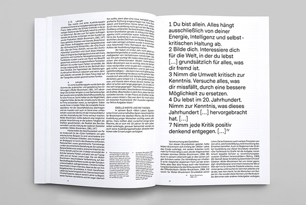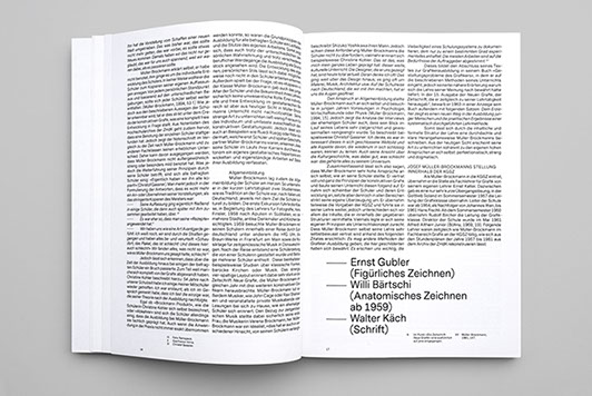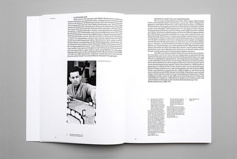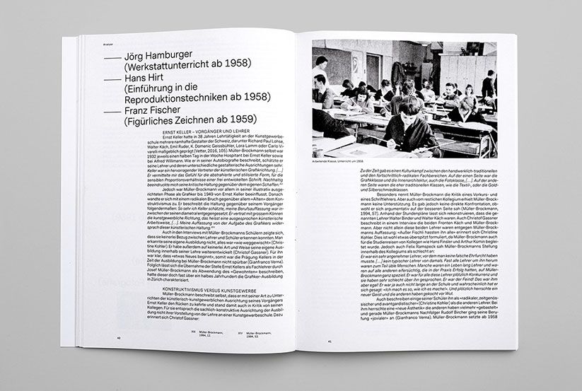 Josef Müller-Brockmann is considered one of the best known representatives of Swiss Graphic Design. This research analyzes Müller-Brockmann as a teacher at the "School of Applied Arts Zurich" from 1957 to 1960, correlating his teaching with his personality, his former students, and his time. As part of the thesis, student work and interviews with former students provide insight into this era in Müller-Brockmann's life. Design history research and contemporary design come together in the two resulting publications. The two books were presented at the Zurich University of the Arts in 2017.